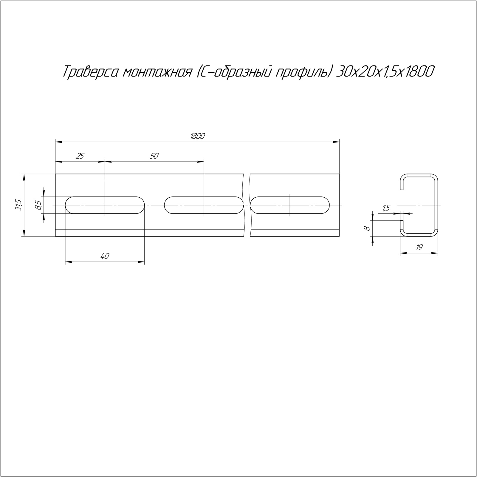 PR16.1156 Траверса монтажная (С-образный профиль) 30х20х1800 (1,5 мм) Промрукав