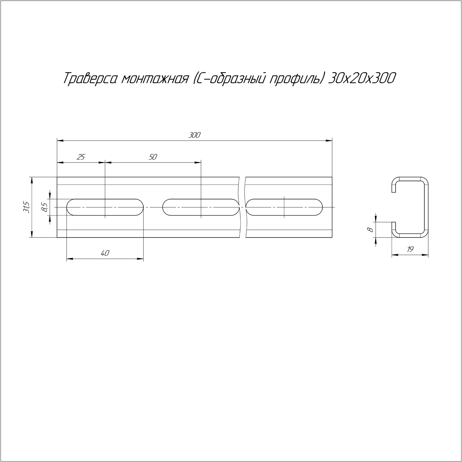 PR16.1148 Траверса монтажная (С-образный профиль) 30х20х300 (1,5 мм) Промрукав