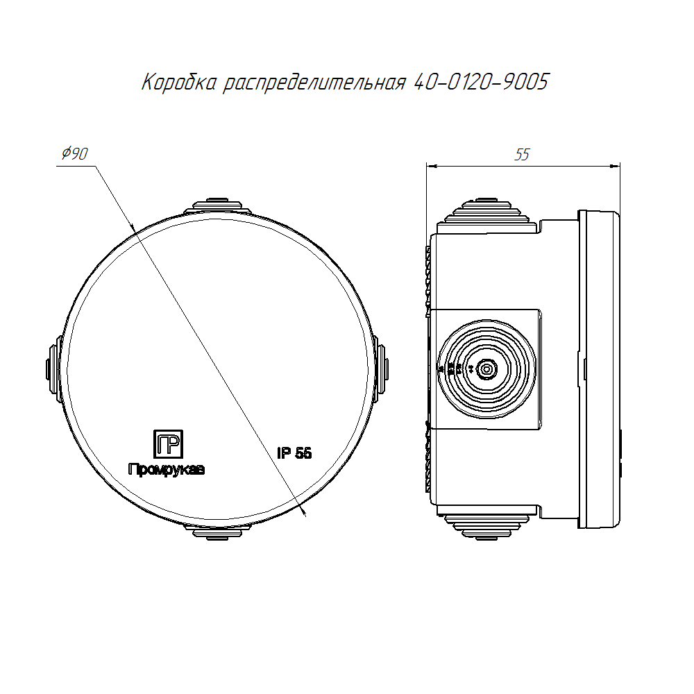 40-0120-9005 Коробка распределительная для о/п безгалогенная (HF) черная 80х50 (102шт/кор) Промрукав
