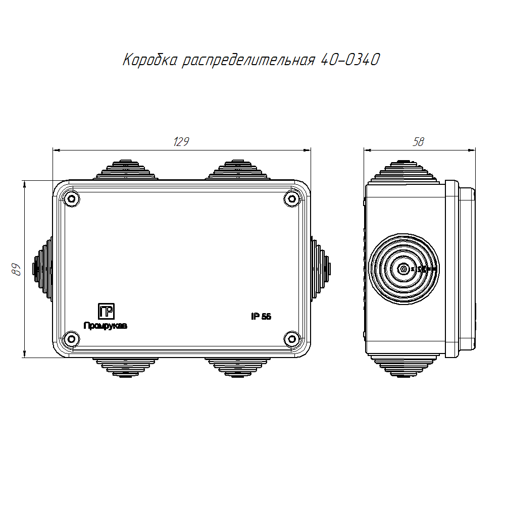 40-0340 Коробка распределительная для о/п безгалогенная (HF) 120х80х50 (64шт/кор) Промрукав