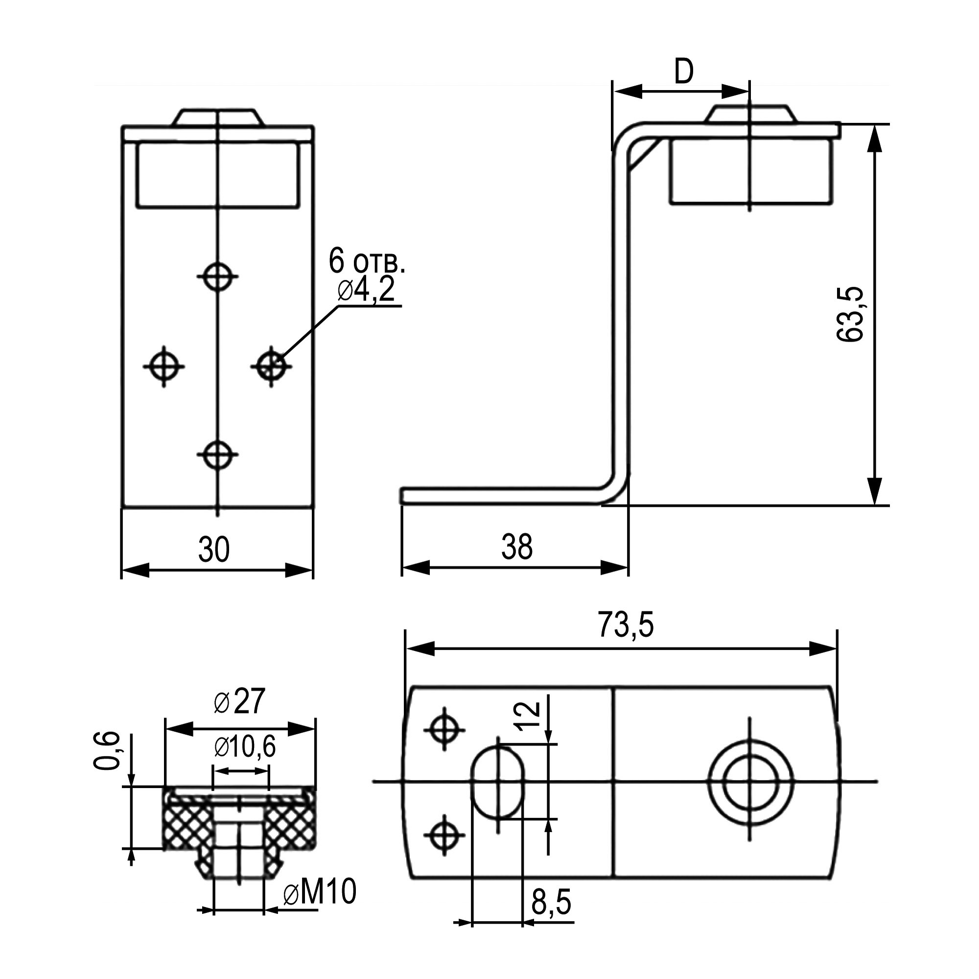 BHZK10 Z-образный кронштейн для воздуховода без виброгасителя под шпильку М8 / М10 DKC