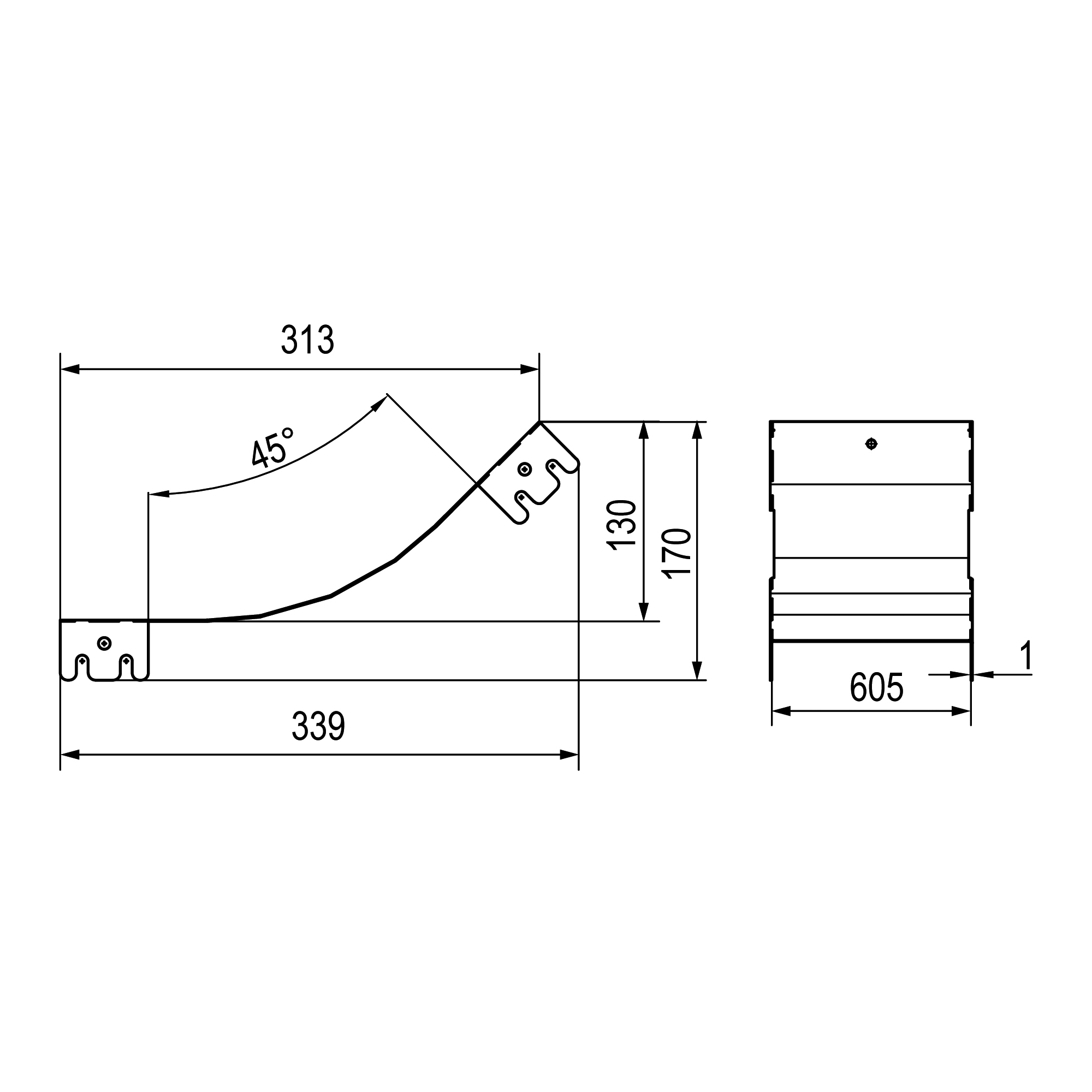 LKH0136K Крышка на угол вертикальный внутренний 45 градусов, 100х600 R300 в комплекте с крепежными элементами DKC