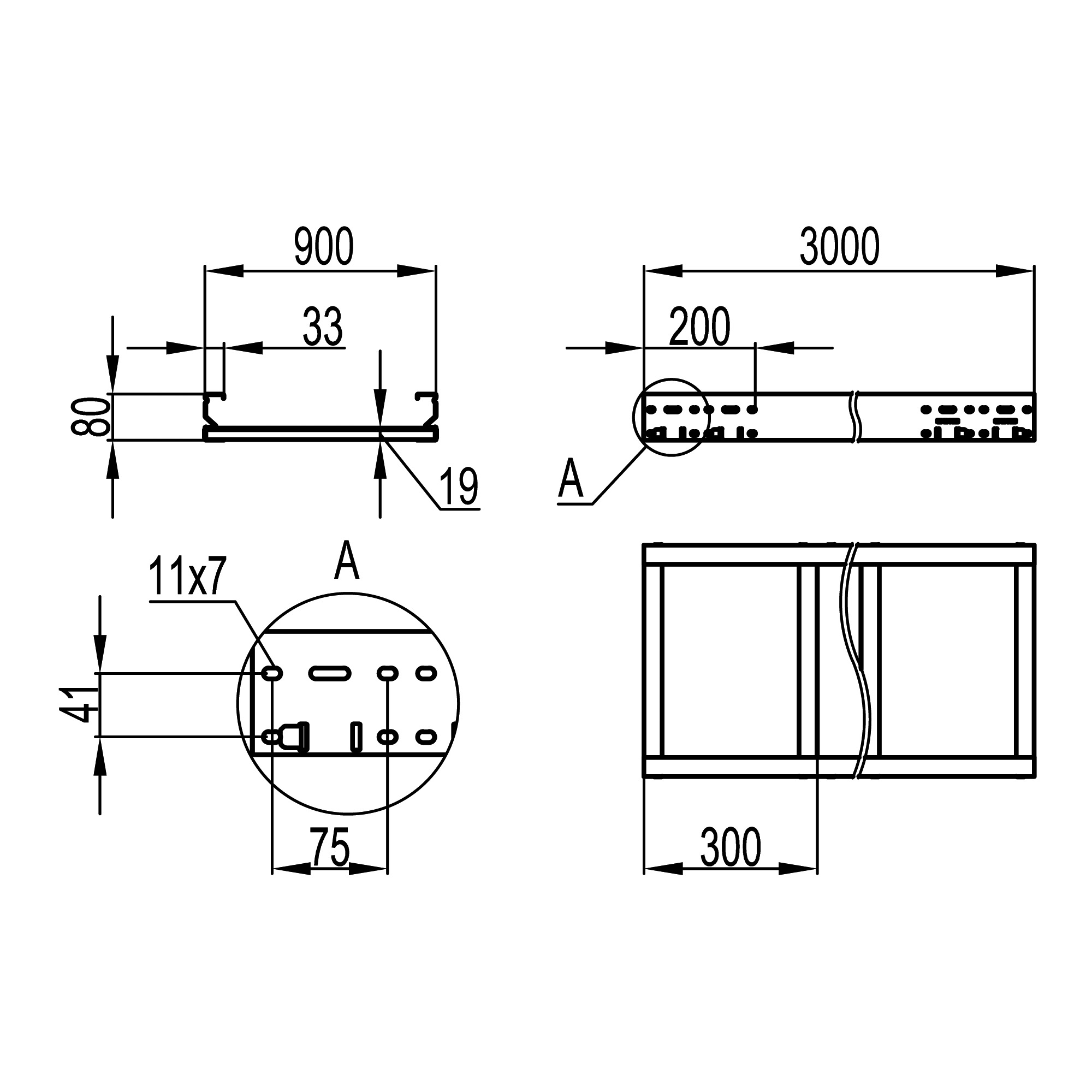 UNH389 Лоток листовой неперфорированный 80х900, лонжерон 2 мм, L 3 м DKC
