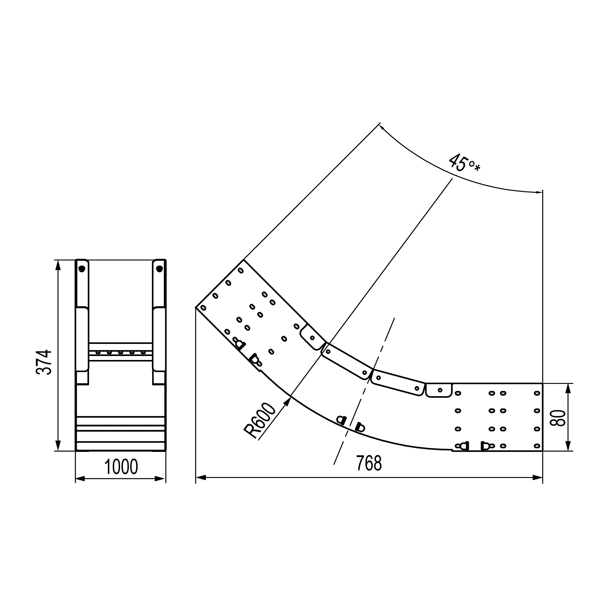 ULIC680 Угол лестничный вертикальный внутренний 45 градусов 80х1000, R600 DKC