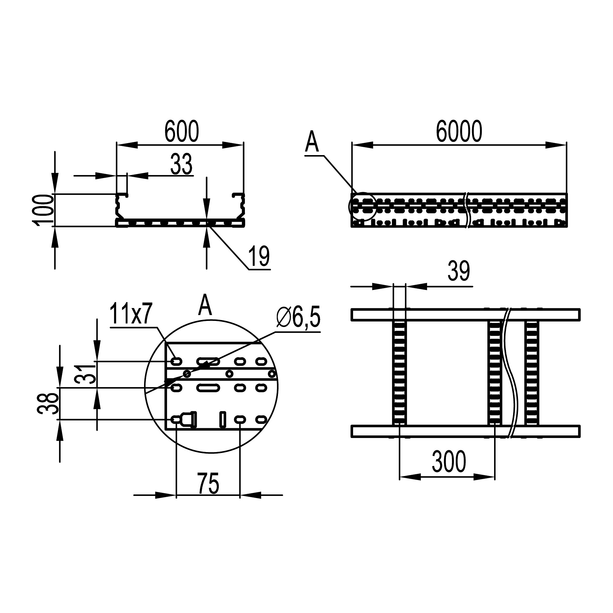 ULH616 Лоток лестничный 100х600, лонжерон 2 мм, L 6 м DKC