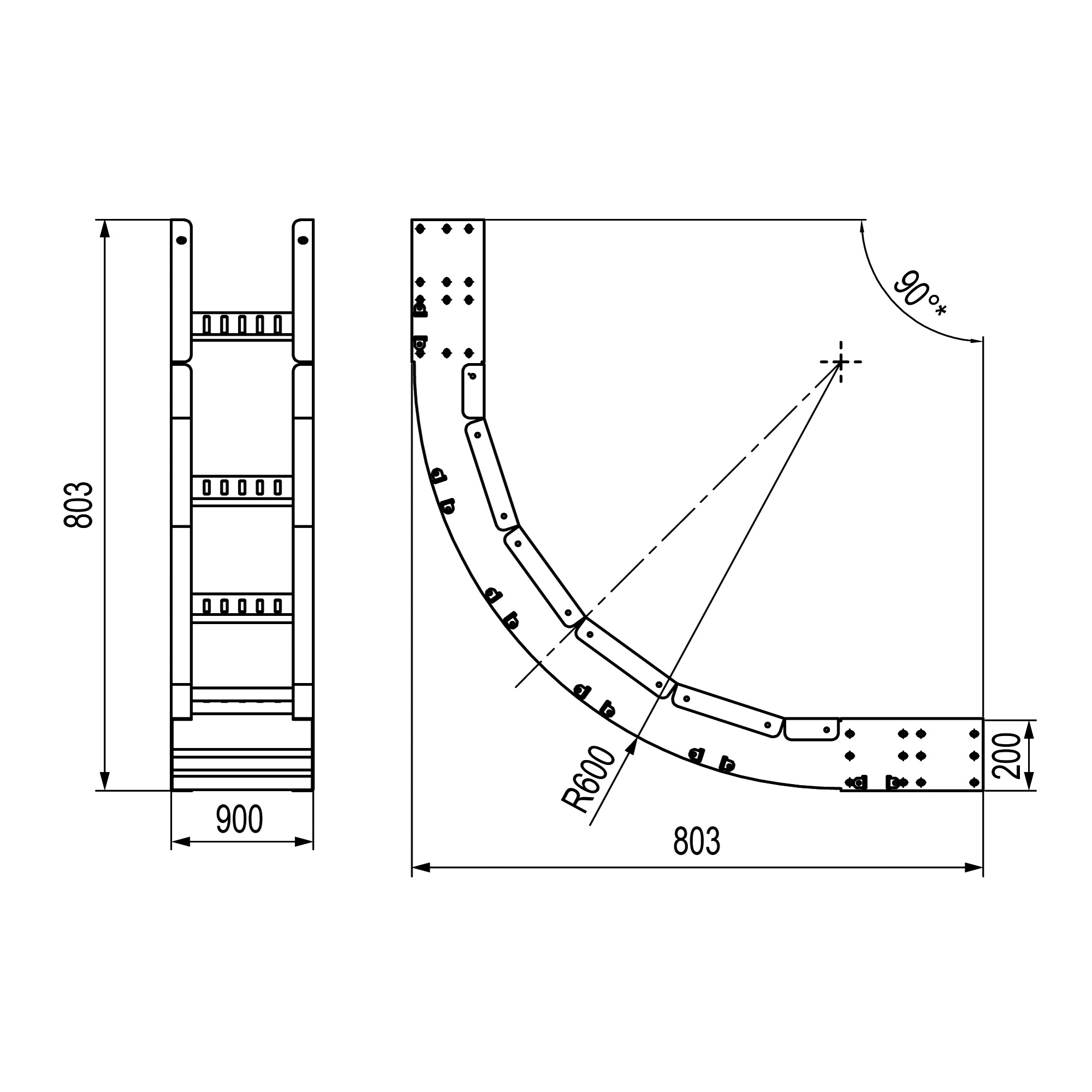 ULID629 Угол лестничный вертикальный внутренний 90 градусов 200х900, R600 DKC