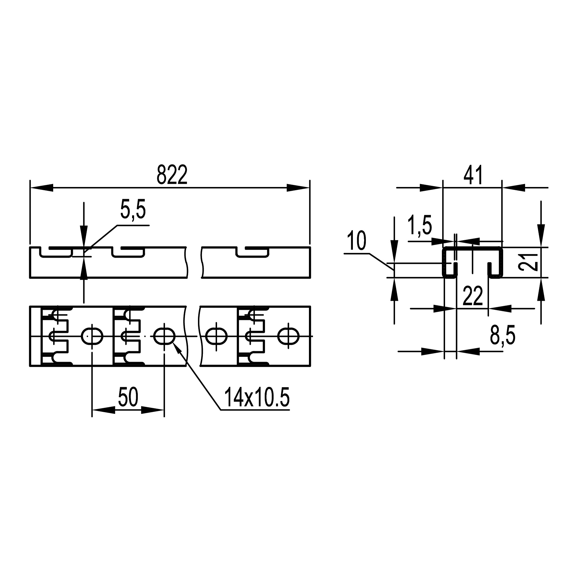 FPL2108 С-обр. профиль для пров. лотка 41х21, L800, толщ.1,5 мм DKC