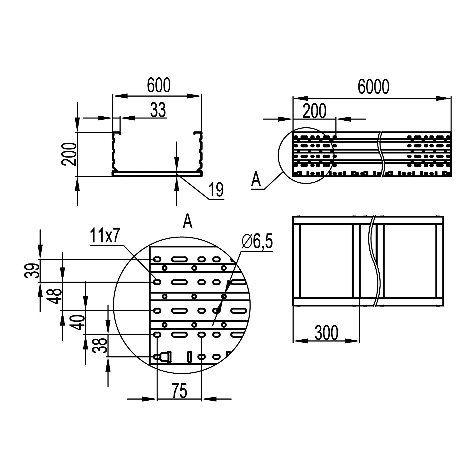 UNM626 Лоток листовой неперфорированный 200x600, лонжерон 1,5 мм, L 6 м DKC