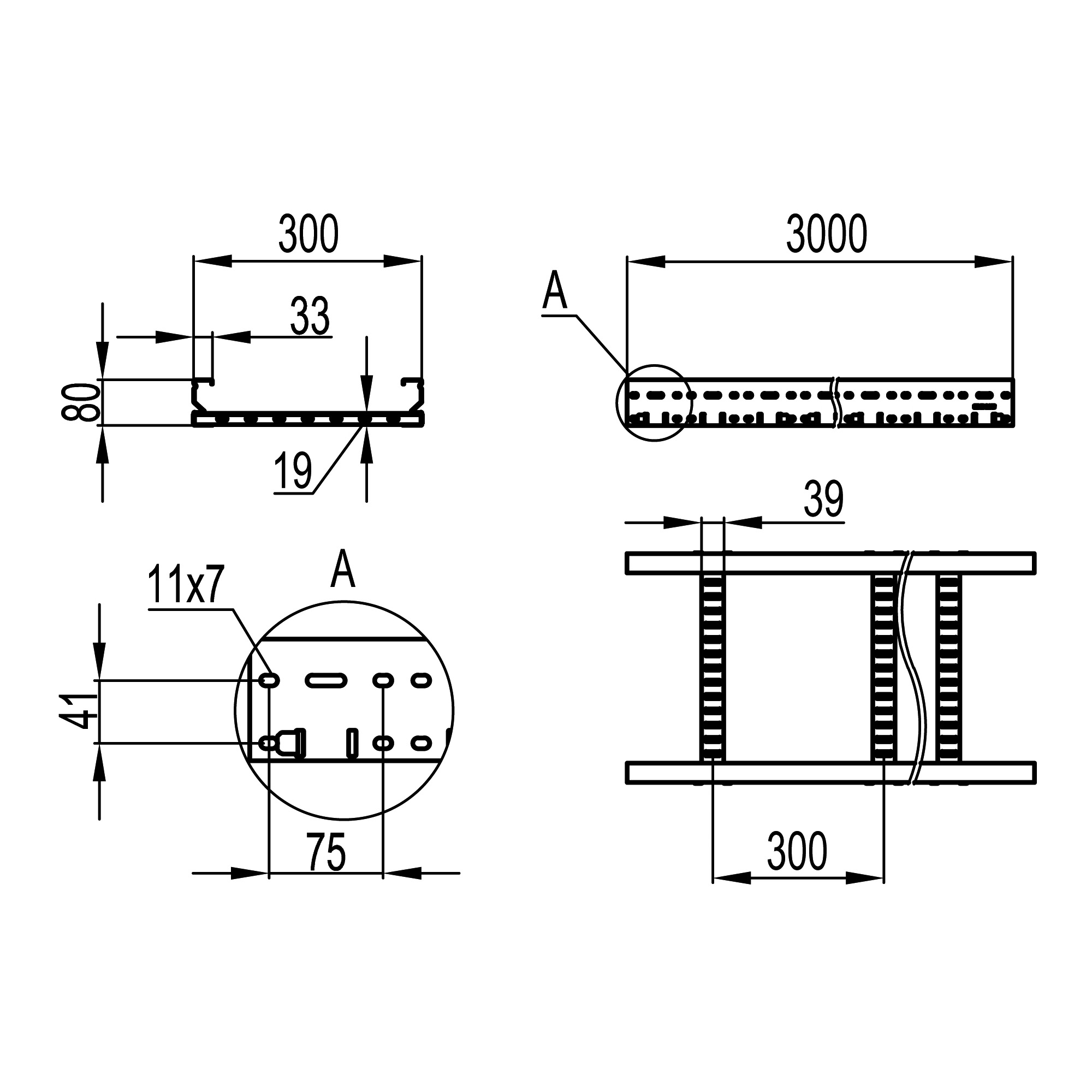 ULH383 Лоток лестничный 80х300, лонжерон 2 мм, L 3 м DKC