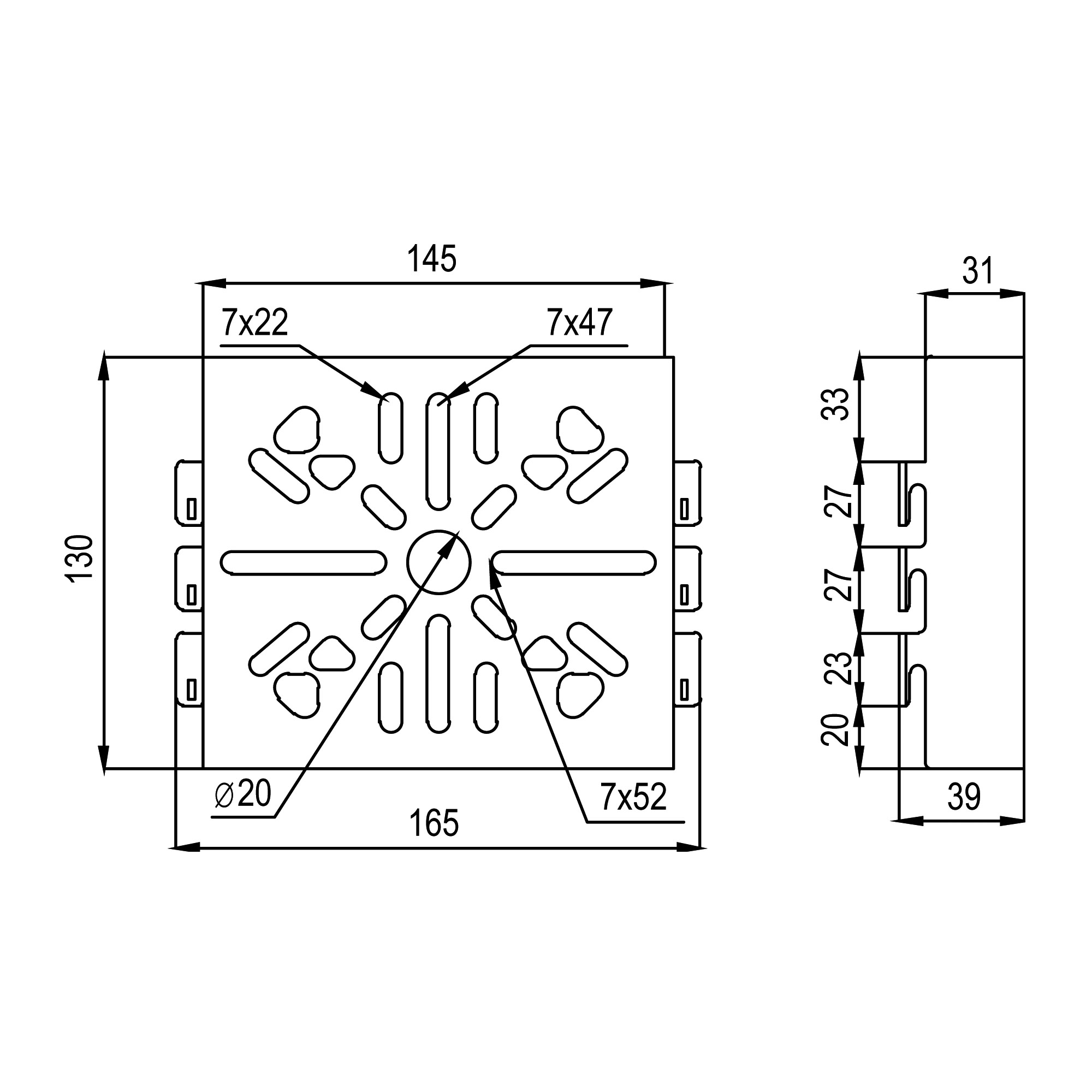 FC37313 Увеличенная монтажная плата 130х145 перфорированная DKC
