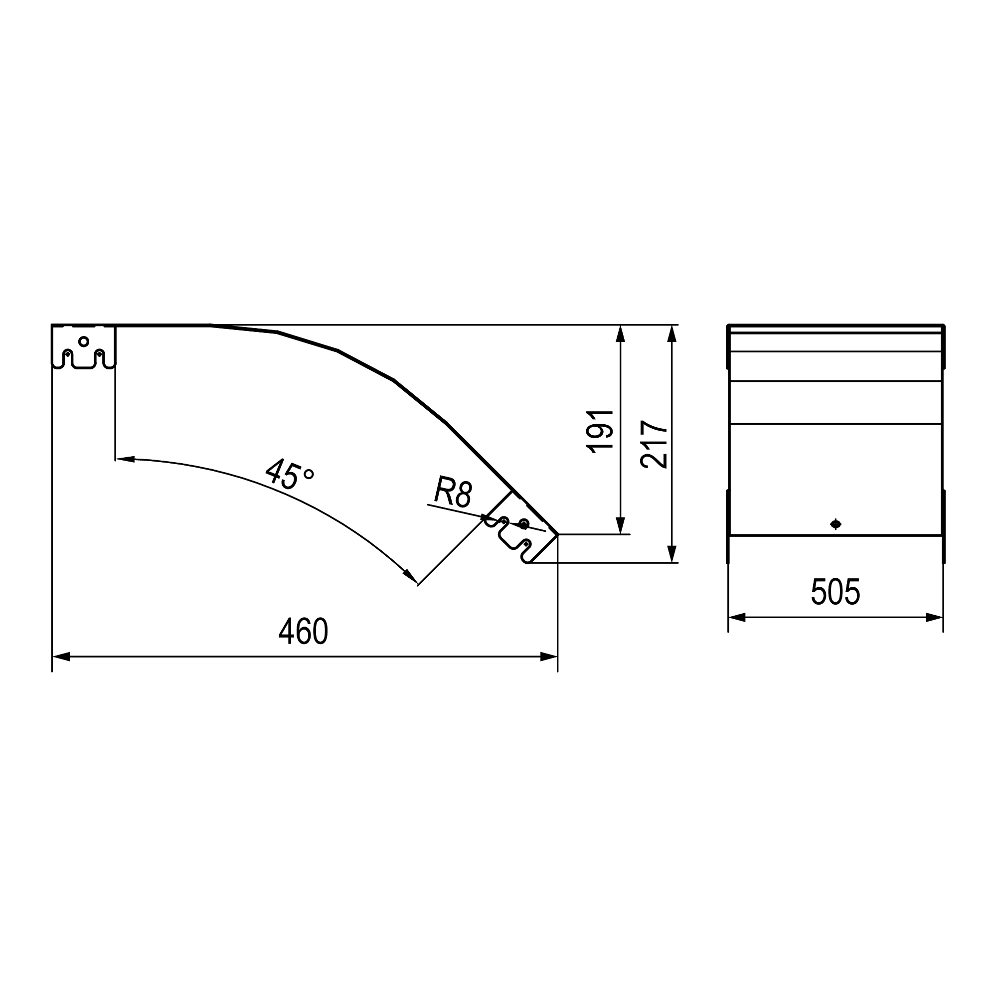LKO0565K Крышка на угол вертикальный внешний 45 градусов, 50х500 R600 в комплекте с крепежными элементами DKC
