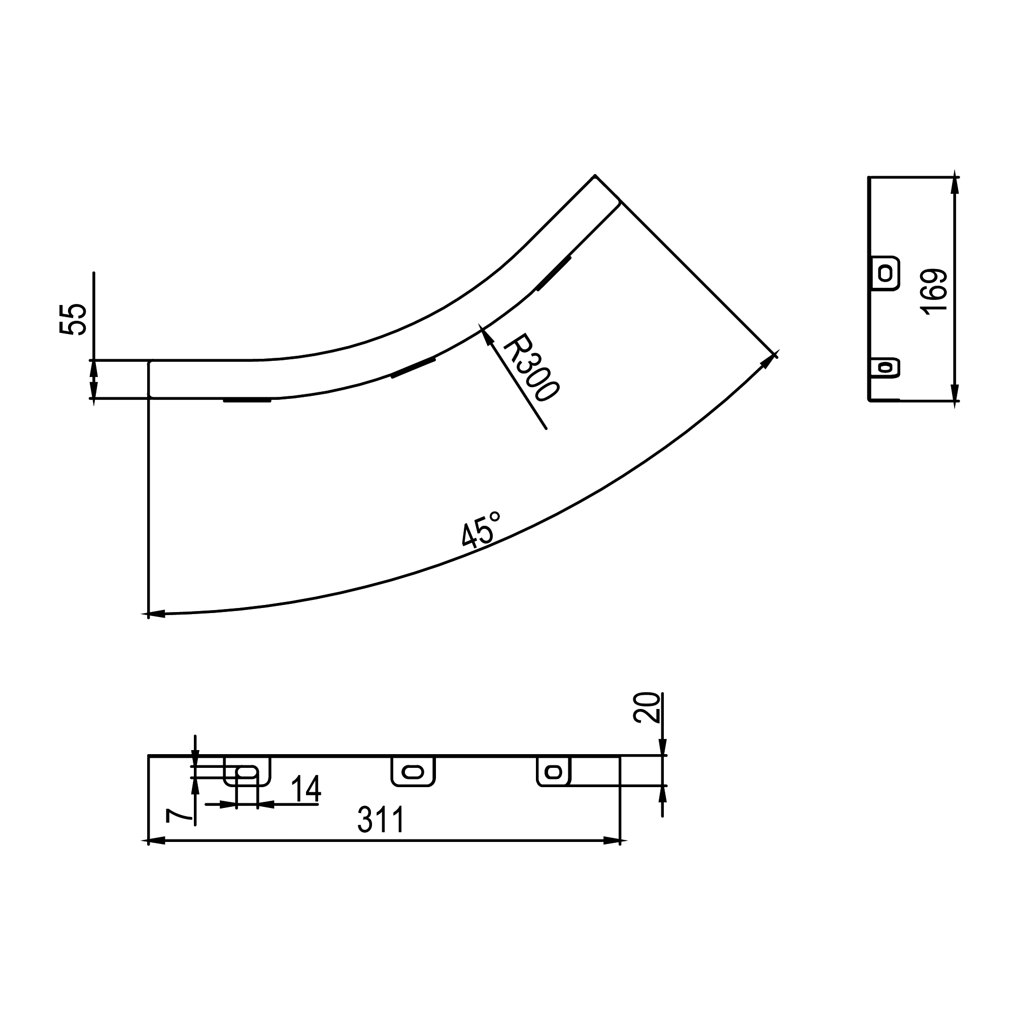 LSC40830K Перегородка SEP для вертикального внутреннего угла 45° H80, R300, в комплекте с крепежными элементами DKC