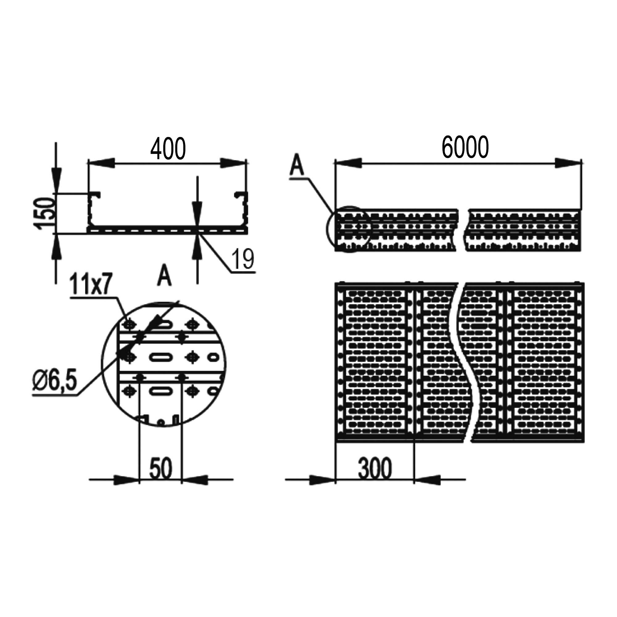 USH654 Лоток листовой 150х400, лонжерон 2 мм, L 6 м DKC