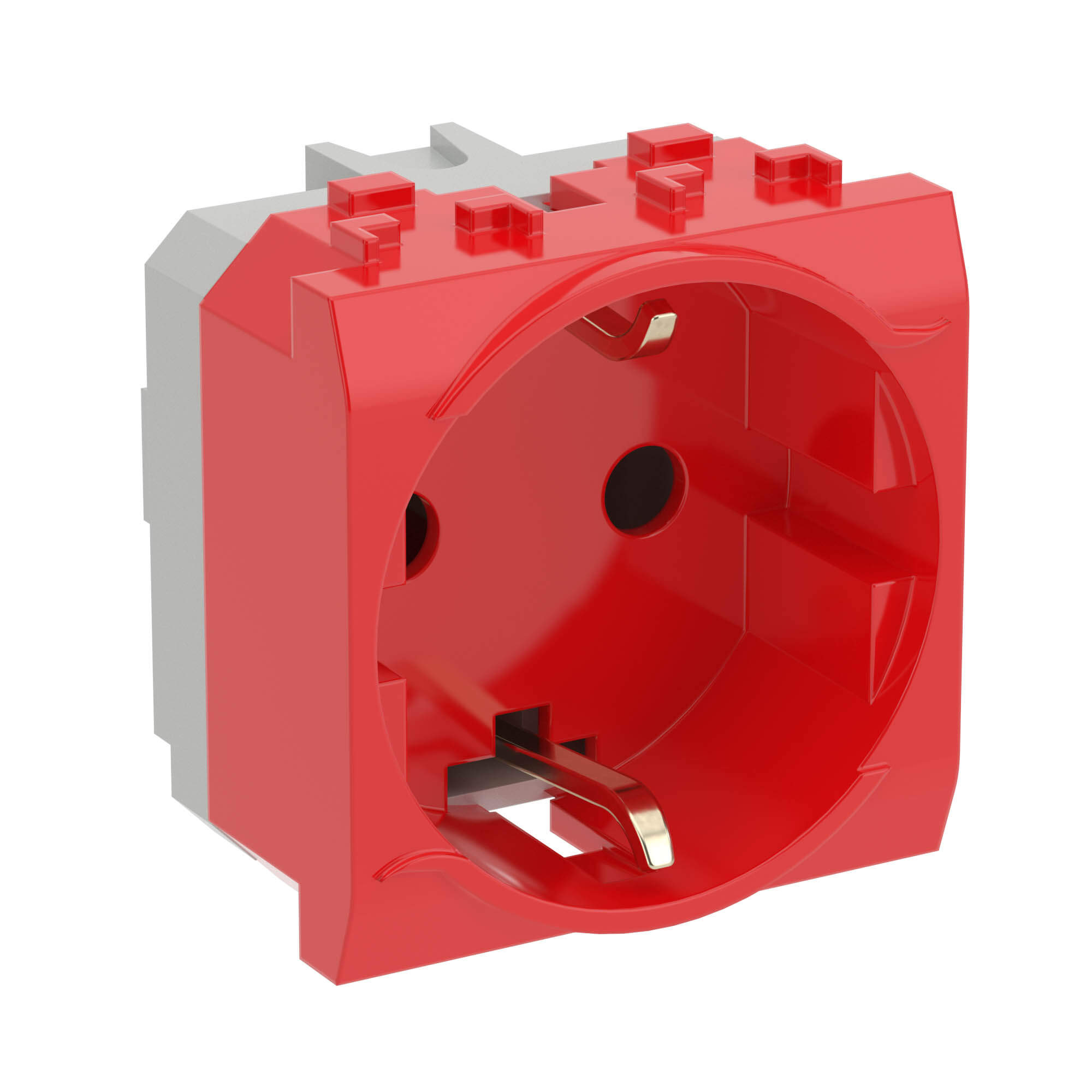 76482R Электрическая розетка, с заземлением, со шторками, красная, 2 мод. DKC