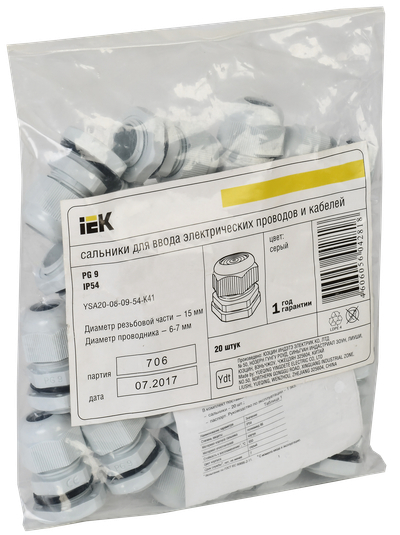 YSA20-08-09-54-K41 Сальник PG 9 диаметр проводника 6-7мм IP54 IEK