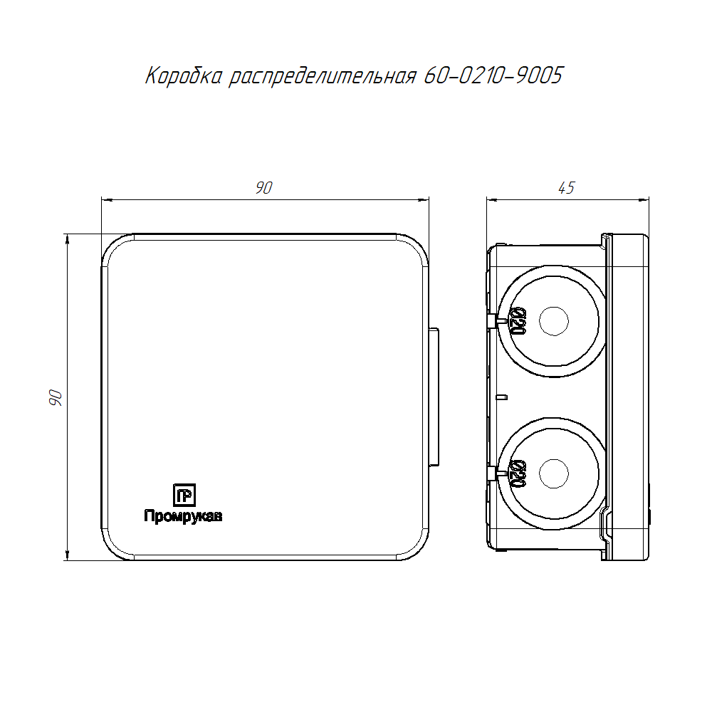 60-0210-9005 Коробка распределительная для прямого монтажа двухкомпонентная (HF) черная 80х80х40 (132шт/кор) Промрукав
