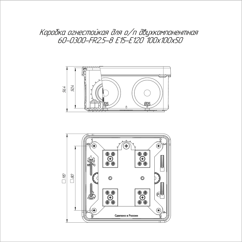 60-0300-FR2.5-8 Коробка огнестойкая для о/п двухкомпонентная Е15-Е120 100х100х50 Промрукав