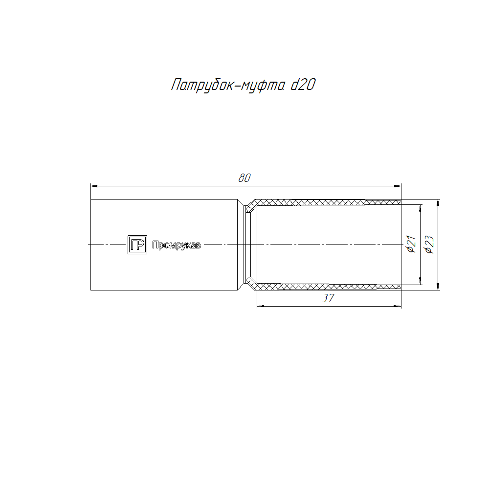 PR.01720м Патрубок-муфта д20 (10шт/800шт уп/кор) Промрукав