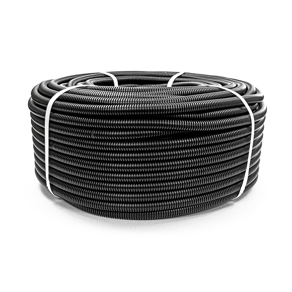PR.022041 Труба гофрированная ПНД тяжёлая 750 Н безгалогенная (HF) стойкая к ультрафиолету черная с/з d20 (100м) Промрукав