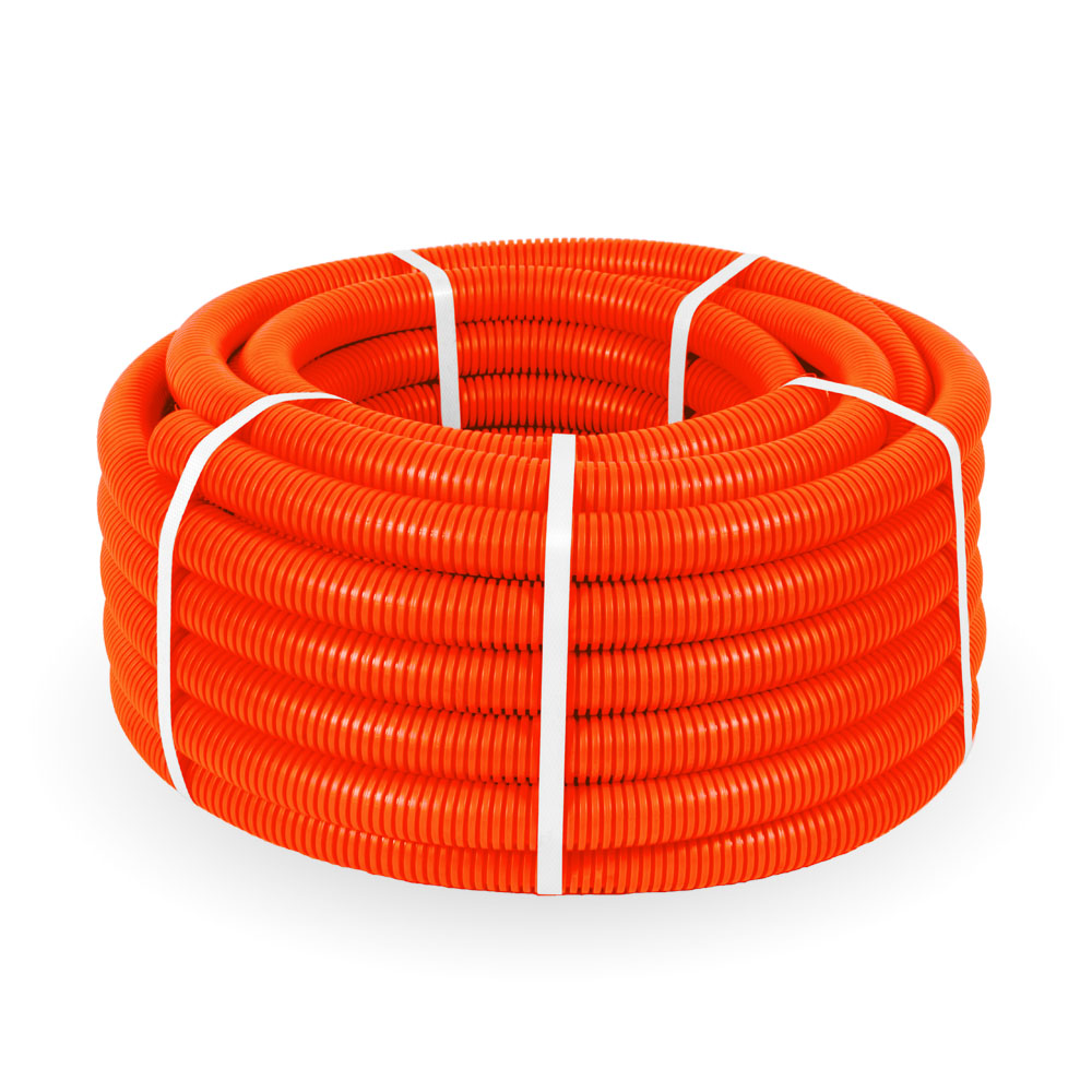 PR.023261 Труба гофрированная ПНД лёгкая 350 Н безгалогенная (HF) оранжевая с/з д32 (25м/1375м уп/пал) Промрукав