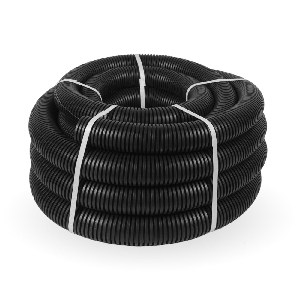 PR.026341 Труба гофрированная ПНД тяжёлая 750 Н безгалогенная (HF) стойкая к ультрафиолету черная с/з d63 мм (15м) Промрукав