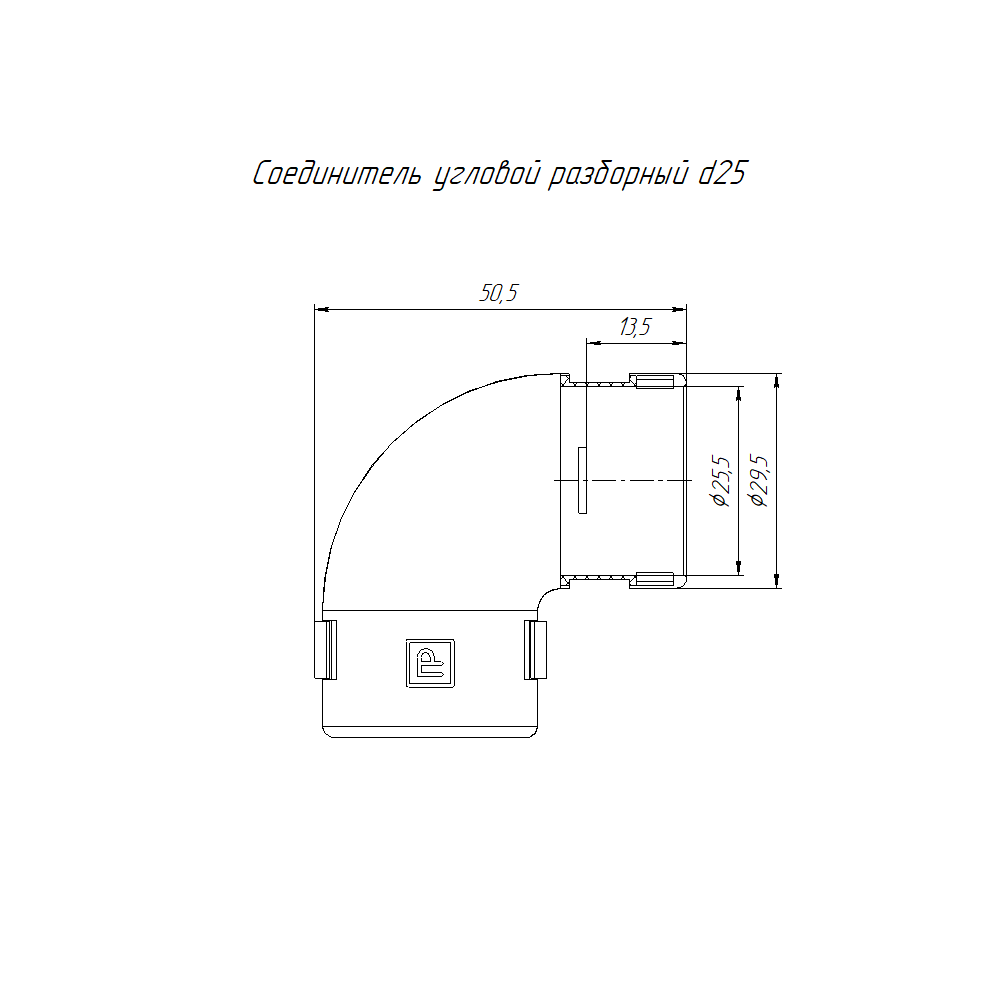 PR.07525б Соединитель угловой разборный белый д25 (30шт/480шт уп/кор) Промрукав