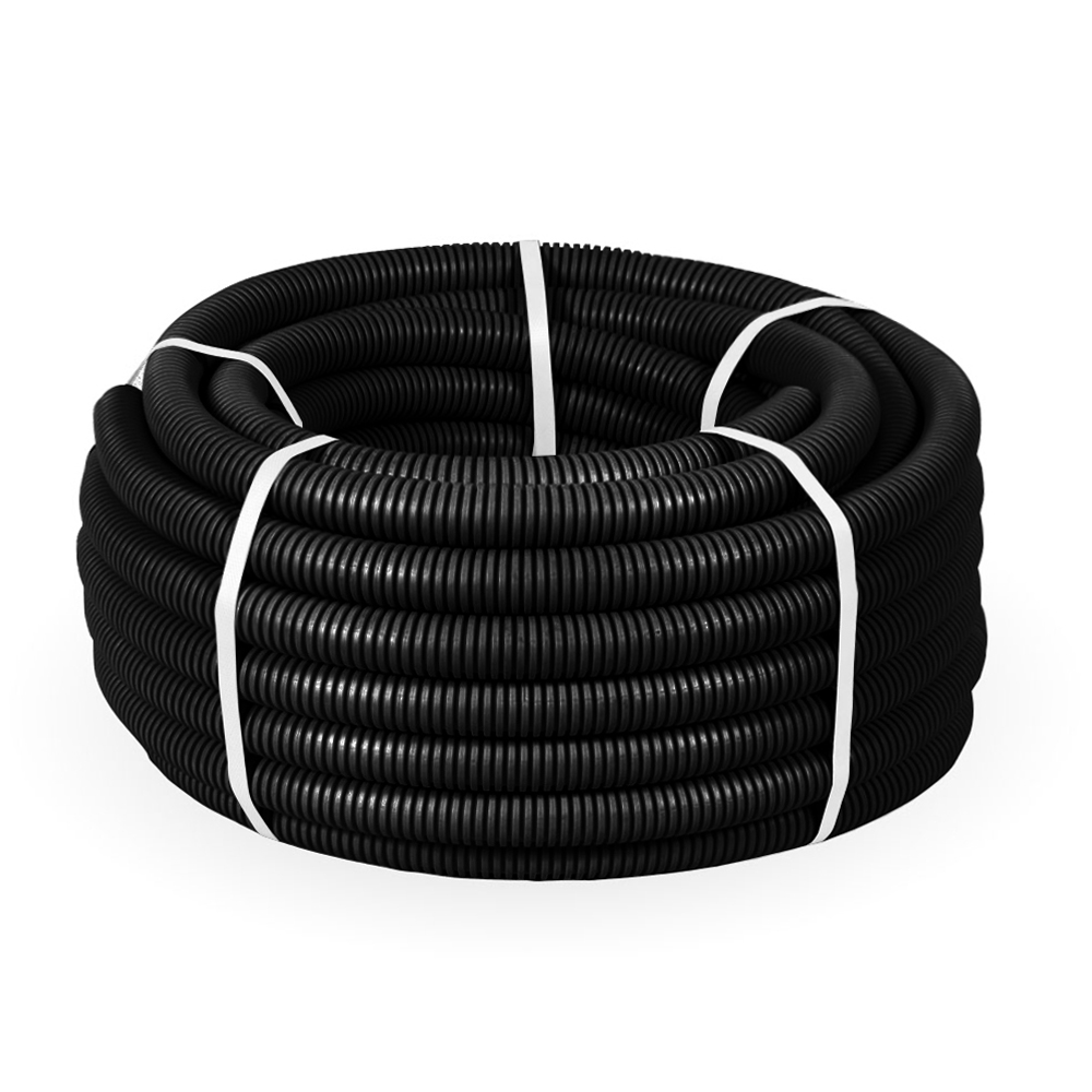 PR02.0066 Труба гофрированная ПП лёгкая 350 Н безгалогенная (HF) разрезная черная д32 (25м/1375м уп/пал) Промрукав