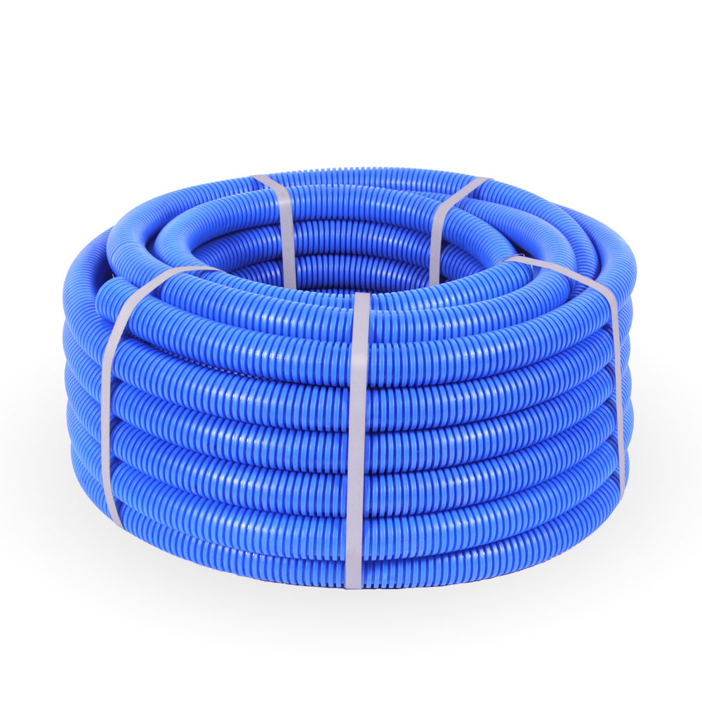PR02.0078 Труба гофрированная ПП лёгкая 350 Н не распространяющая горение синяя с/з д32 (25м/1375м/ уп/пал) Промрукав
