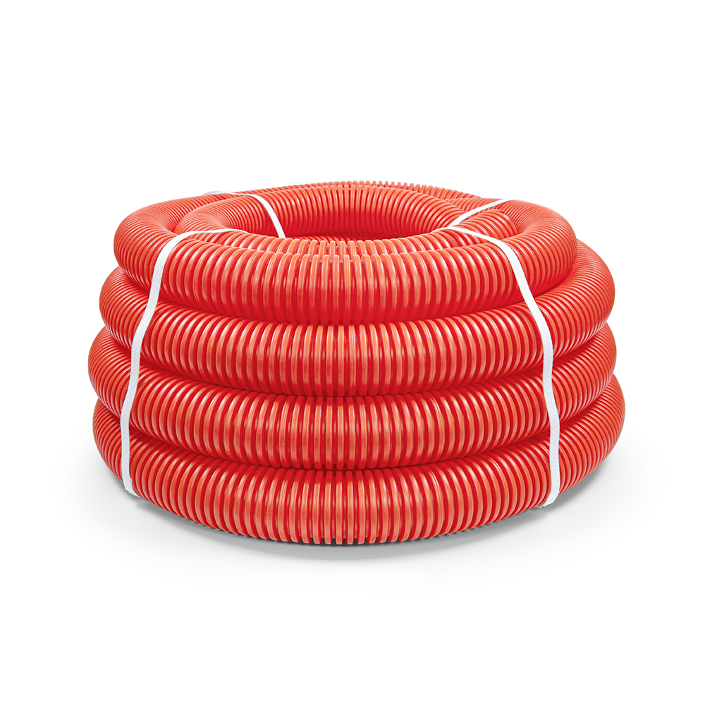 PR02.0093 Труба гофрированная ПНД защитная для МПТ (пешель) красная д63/50,6 (15м/360м уп/пал) Промрукав