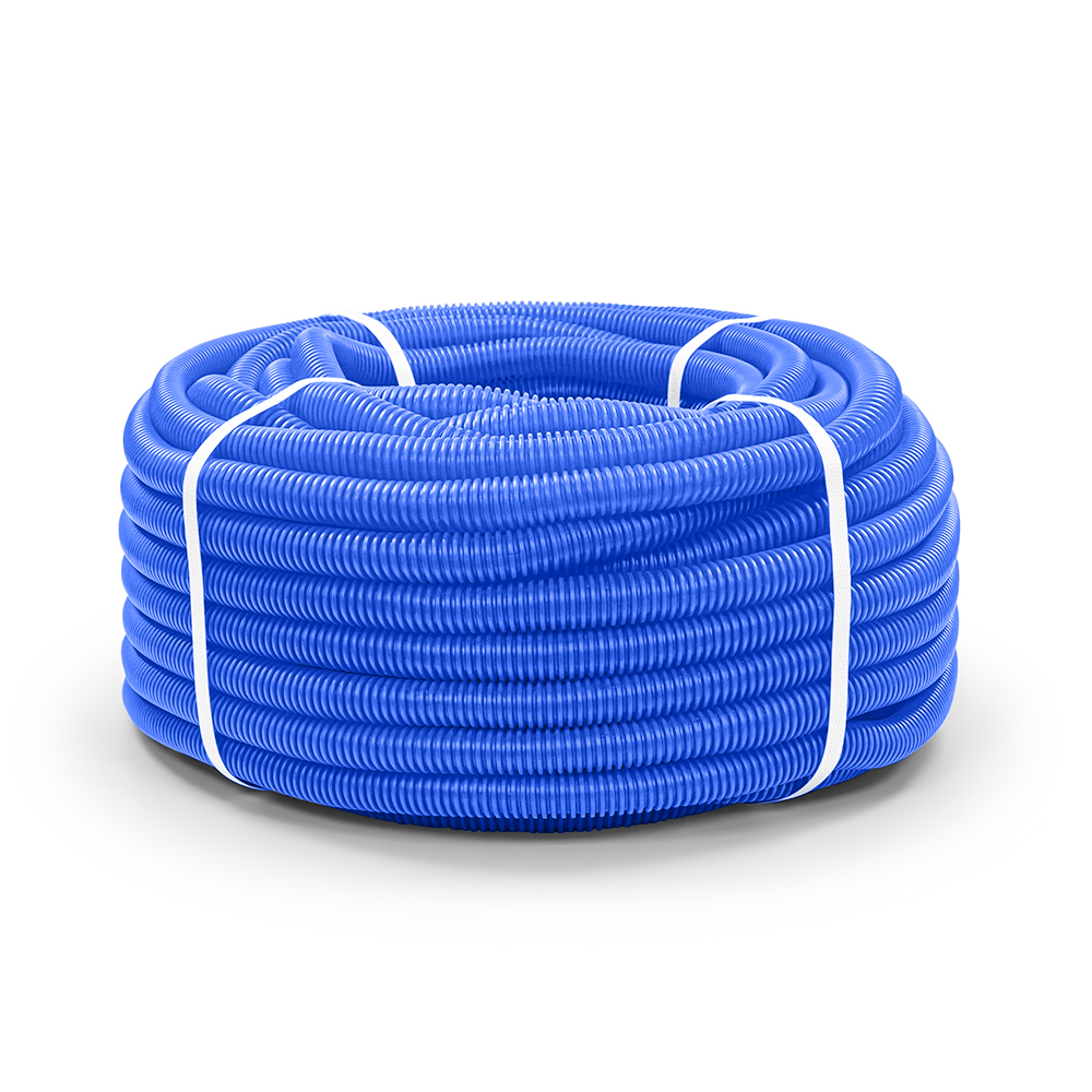 PR02.0096 Труба гофрированная ПНД защитная для МПТ (пешель) синяя д25/18,3 (50м/2600м уп/пал) Промрукав
