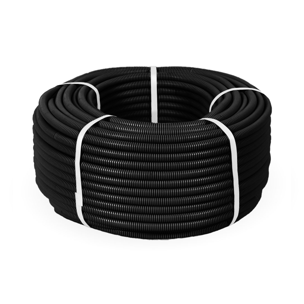 PR02.0121 Труба гофрированная ПНД легкая 350 Н безгалогенная (HF) стойкая к ультрафиолету черная с/з d16 мм (25м/уп) Промрукав