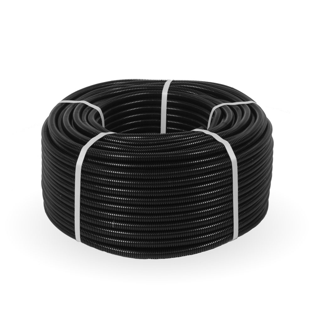 PR02.0122 Труба гофрированная ПНД легкая 350 Н безгалогенная (HF) стойкая к ультрафиолету черная с/з d16 мм (50м/уп) Промрукав