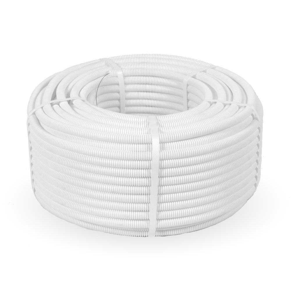 PR02.0239 Труба гофрированная ПЛЛ тяжелая безгалогенная (HF) негорючая (НГ) белая с/з д16 (100м/5500м уп/пал) Промрукав