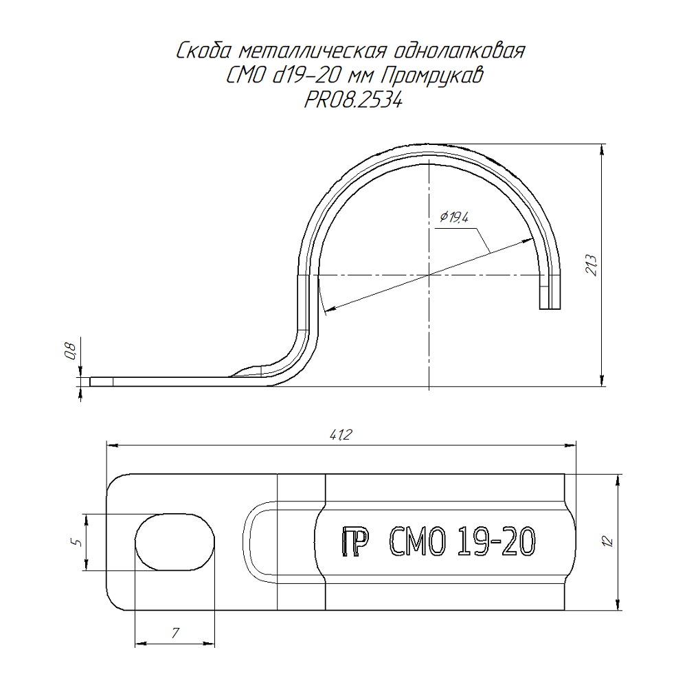 PR08.2534 Скоба металлическая однолапковая СМО 19-20 (100 шт/уп) Промрукав