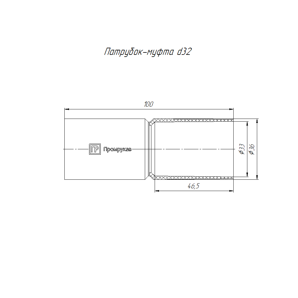 PR13.0184 Патрубок-муфта черная д32 (36шт/324шт уп/кор) Промрукав