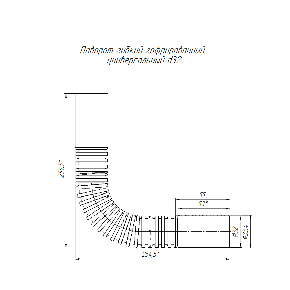 PR13.0208 Поворот гибкий гофрированный универсальный д32 (15шт/75шт уп/кор) Промрукав
