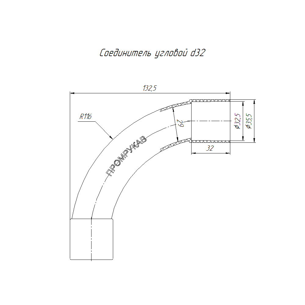 PR13.0242 Соединитель угловой бук д32 (5шт/125шт уп/кор) Промрукав