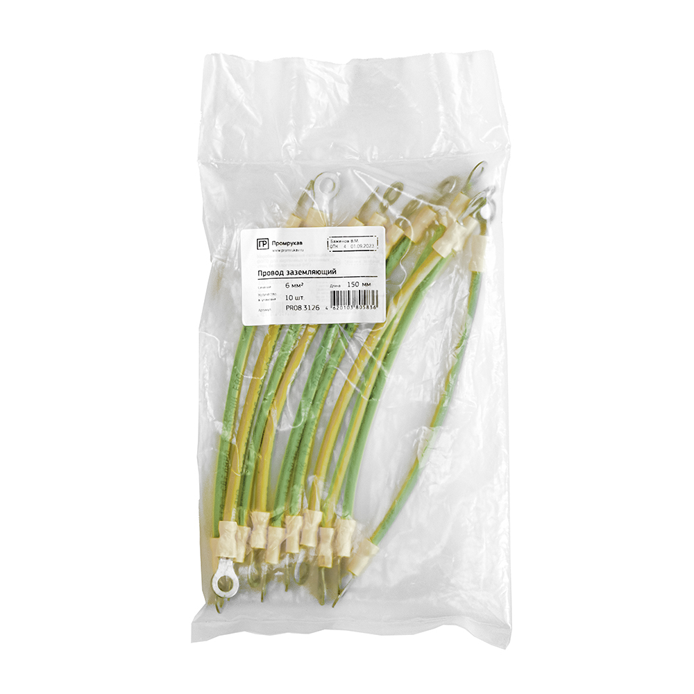 PR13.02754 Провод заземляющий сечением 6 мм² длиной 200 мм (10 шт/уп) Промрукав