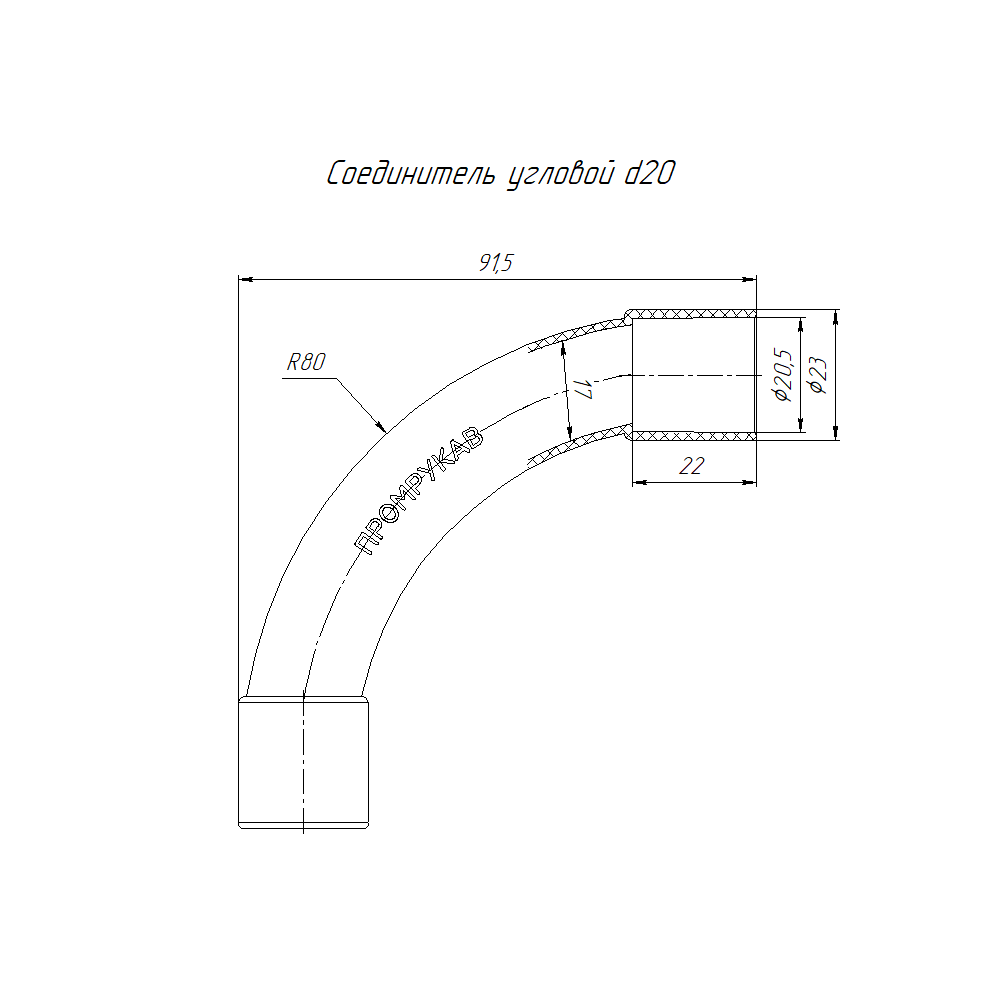 PR13.0276 Соединитель угловой бук д20 (50шт/450шт уп/кор) Промрукав