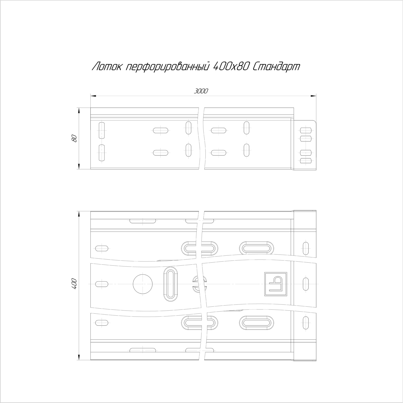 PR16.0015 Лоток перфорированный Стандарт 400х80х3000 (1,0 мм) (6 м/уп) Промрукав