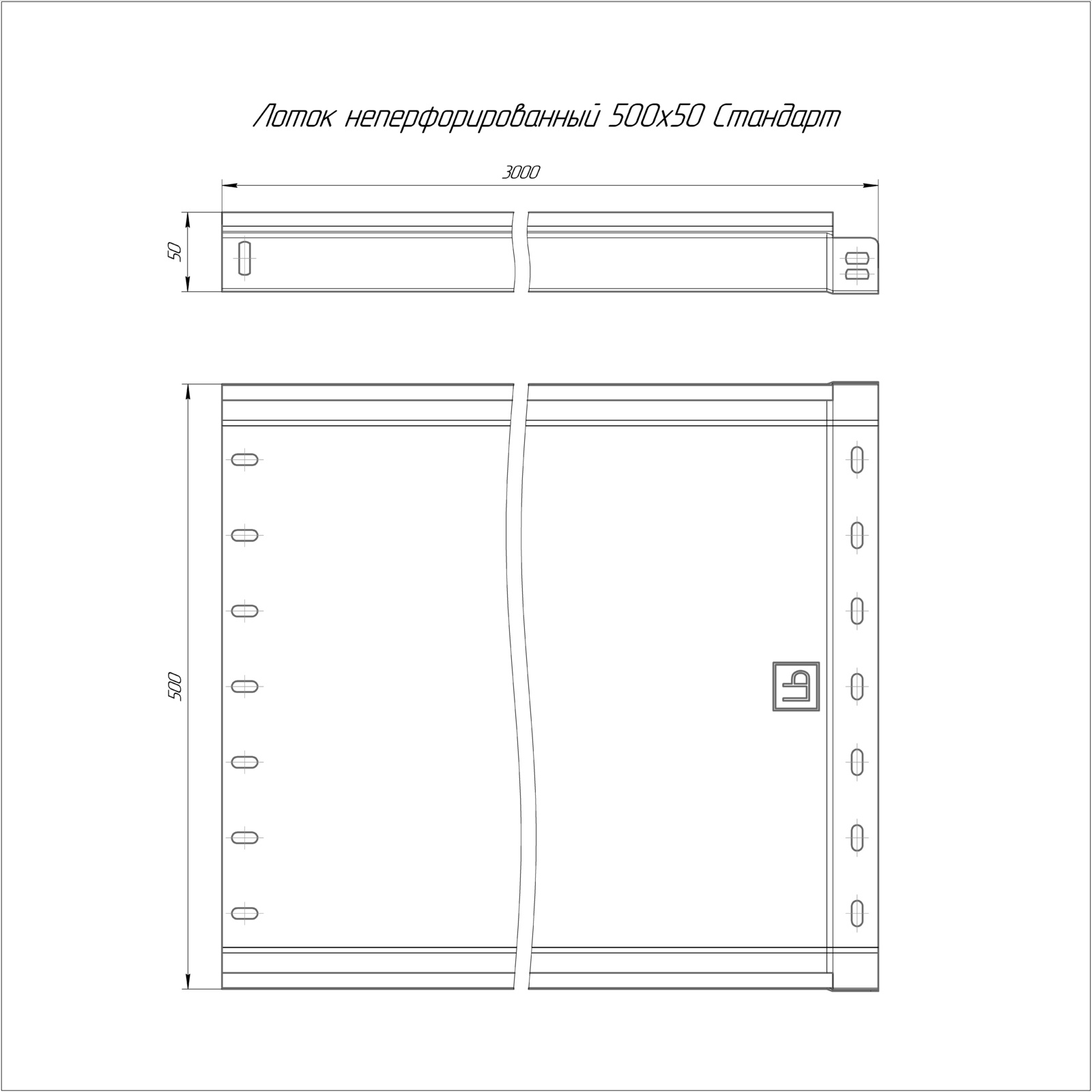PR16.0061 Лоток неперфорированный Стандарт 500х50х3000 (1,0 мм) (6 м/уп) Промрукав