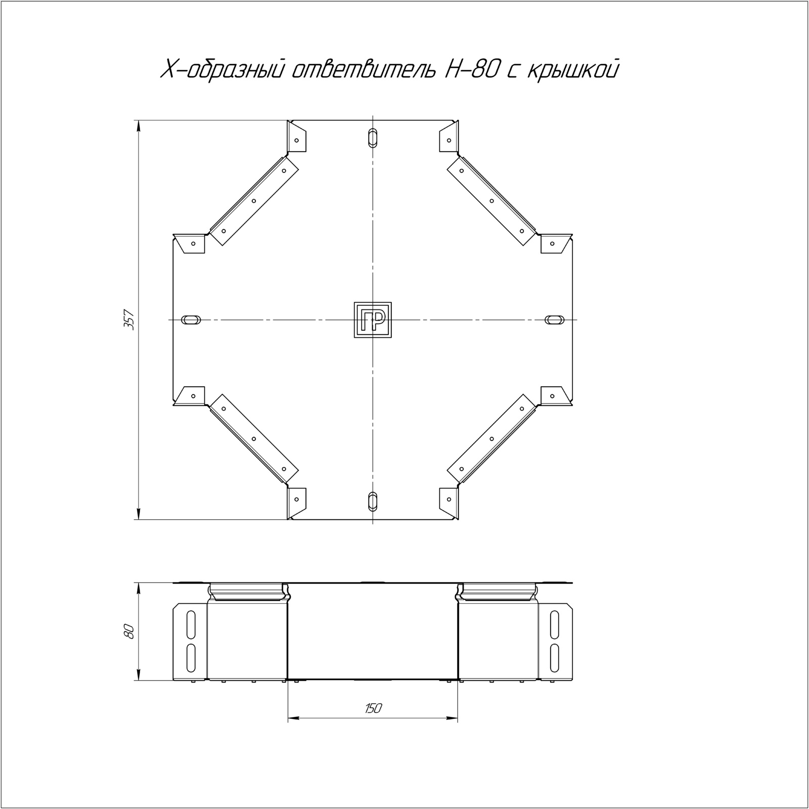 PR16.0460 Х-образный ответвитель с крышкой Стандарт 150х80 Промрукав