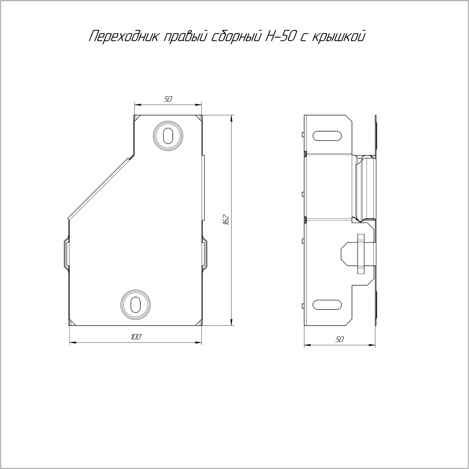 PR16.0564 Переходник правый с крышкой Стандарт 100х50х50 Промрукав