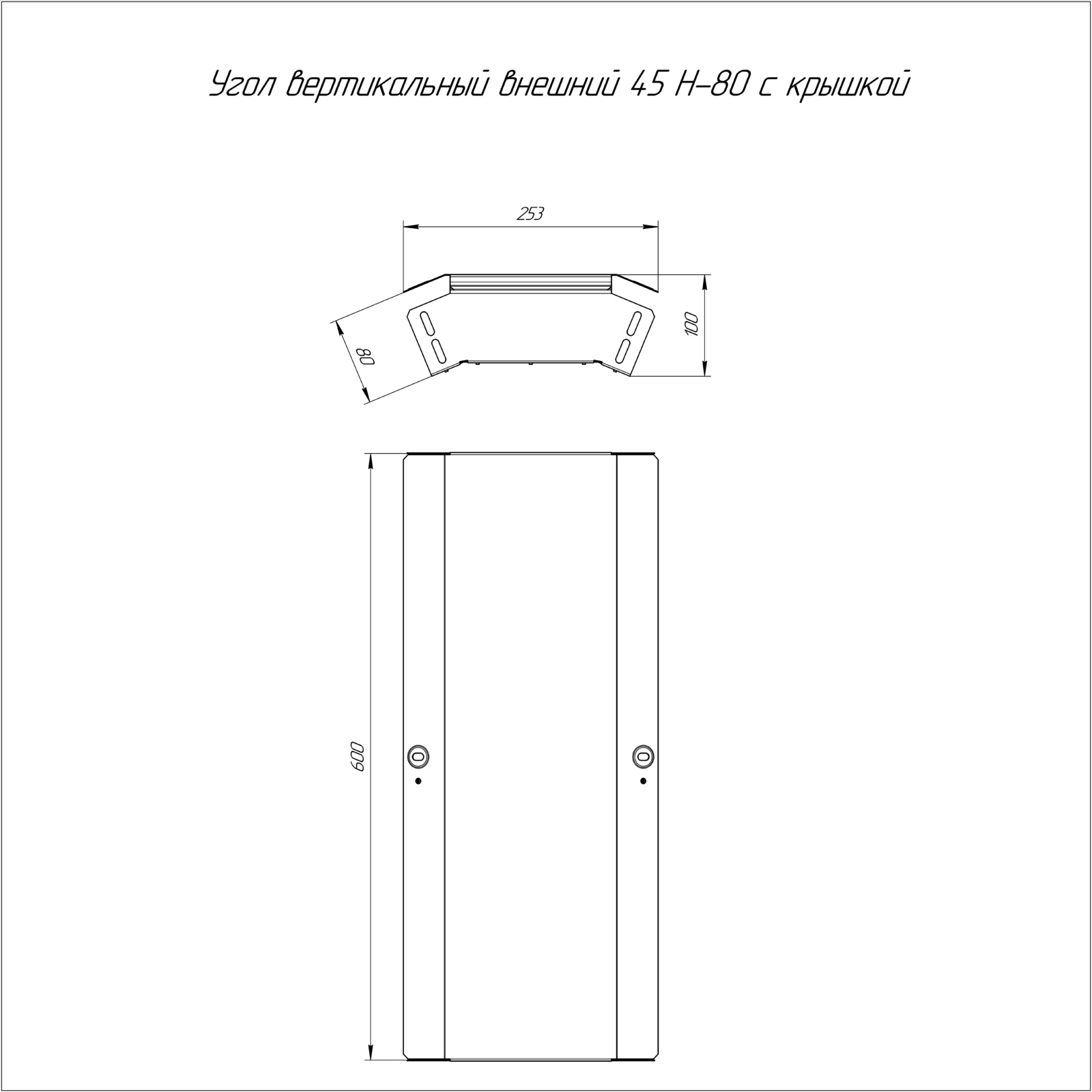 PR16.0581 Угол вертикальный внешний 45 градусов с крышкой Стандарт 600х80 Промрукав