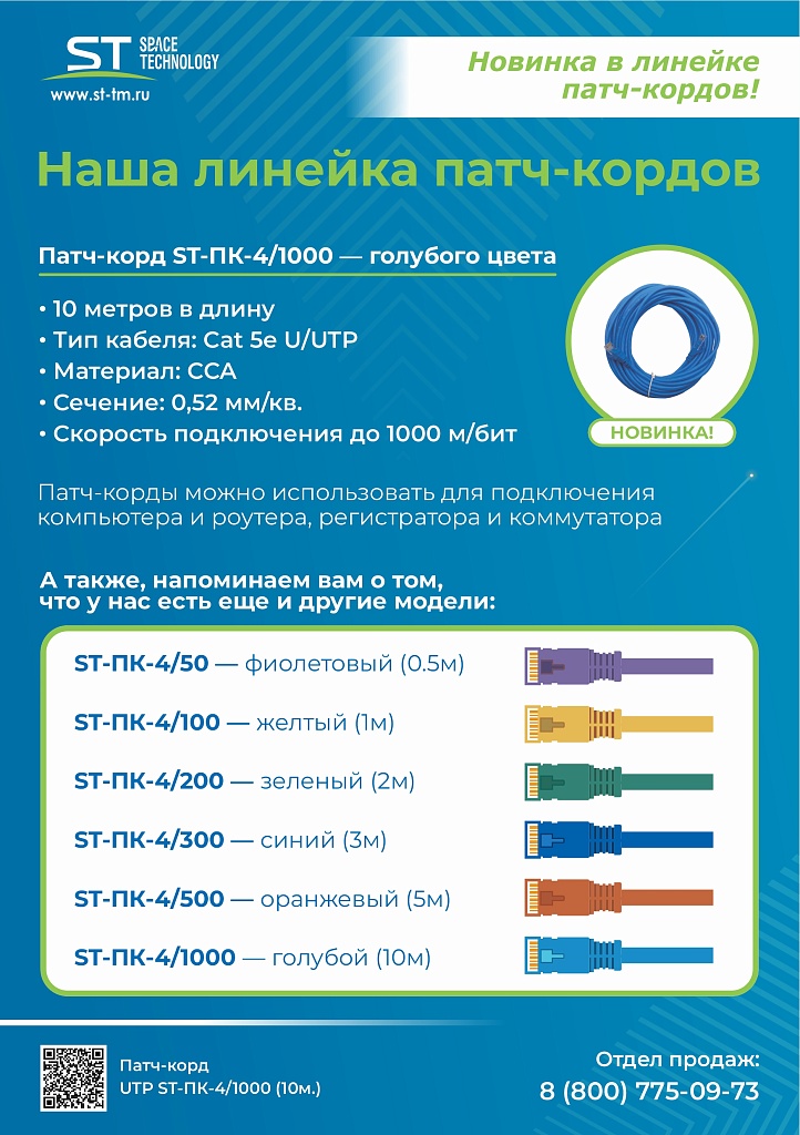 UTP ST-ПК-4/50 (0,5м.) Патч-корд Space Technology